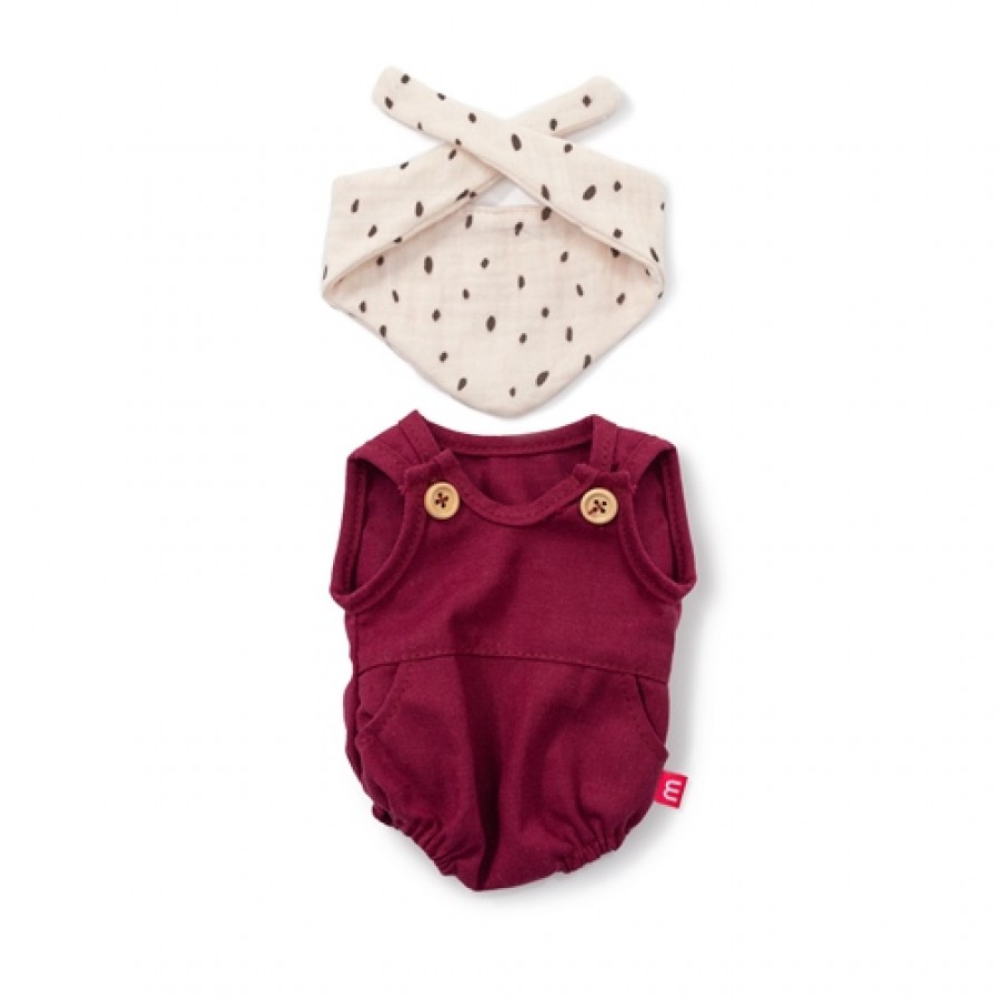 Стильный комплект для куклы Miniland 38 см состоит из боди цвета бордо и слюнявчика. У наборі йде вішалка, тому улюблений комплект не загубиться та не пам'ятається. До того ж, малюк у такий спосіб навчається акуратності.