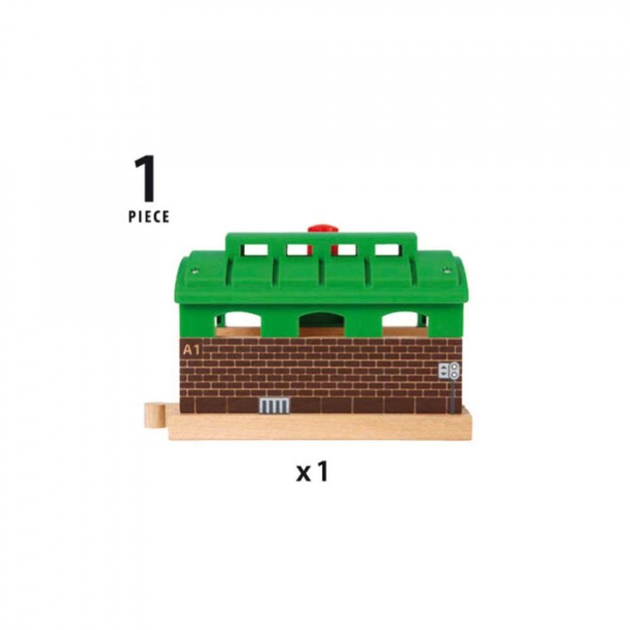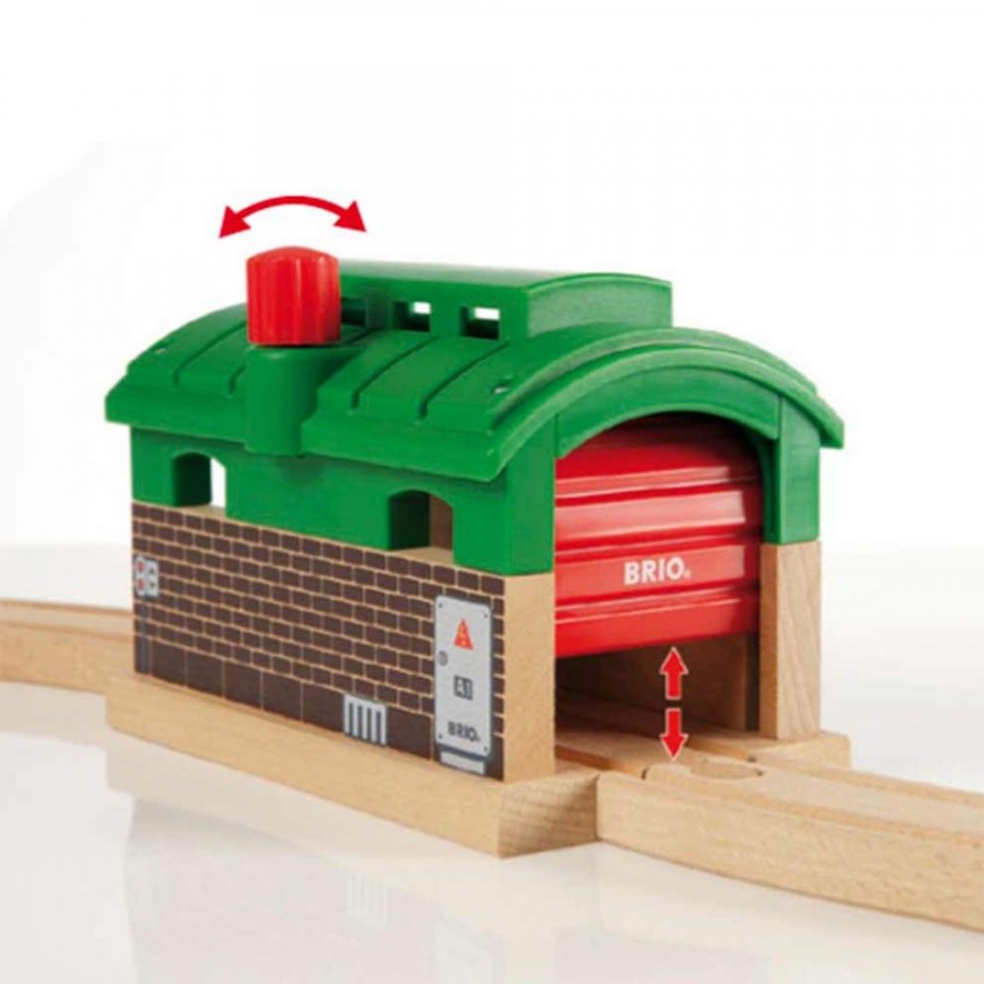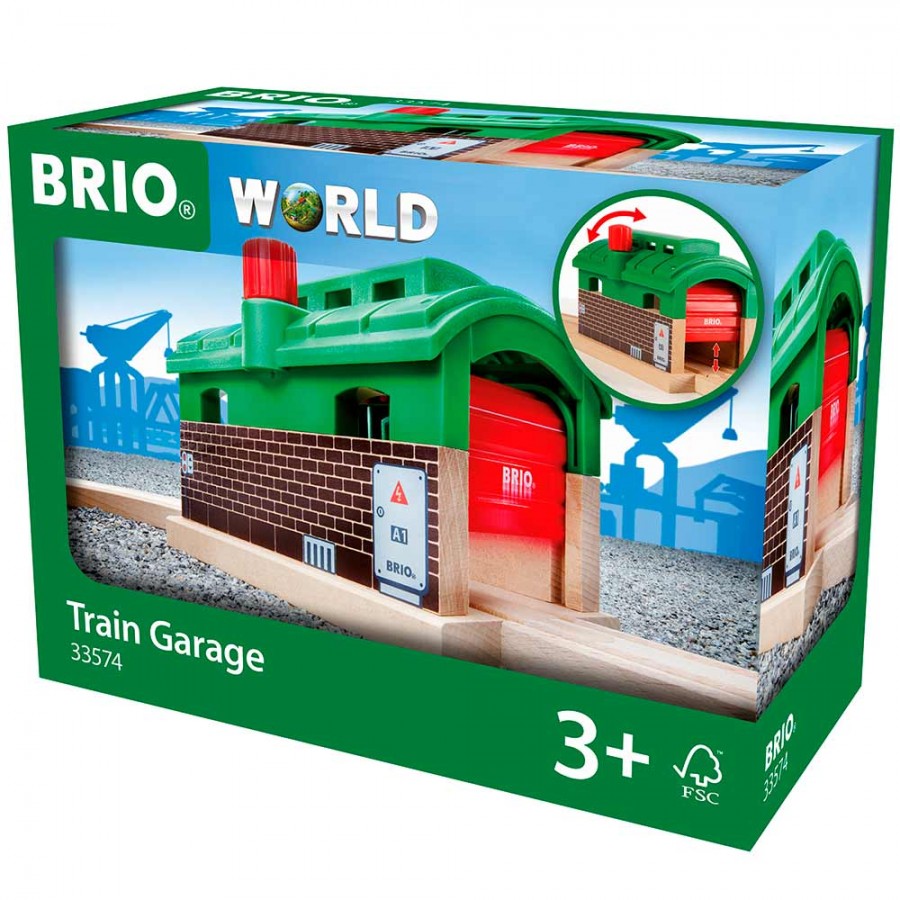 Це депо допоможе поїздам відновити сили, дасть змогу перевірити їх на наявність несправностей та, за потреби, технічно обслужити їх. Поверніть ручку зверху, щоб відкрити та закрити двері. Або тримайте обидві двері відчиненими і використовуйте депо як тунель для проїзду поїздів. Будова повністю сумісна з іншими іграшками BRIO World завдяки дерев'яним коліям, що проходять через його центр. Вирушайте у подорож з новим набором. Тепер можна винаходити ще більше ігрових сюжетів у місті BRIO.