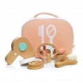 Всі юні принцеси з раннього віку хочуть бути схожими на своїх Ма. Їх приваблюють мамині косметичка та косметика. Дитячий ігровий набір від компанії Miniland Educational - це 7 елементів, виготовлених з натурального дерева. У наборі ви знайдете: лак для нігтів, помаду, палітру тіней для повік, олівець для губ, щітку для волосся, дзеркальце та фен. Все це можна скласти у зручну та красиву текстильну сумочку. З таким набором ваша дитина почуватиметься справжньою леді.