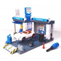 Дитячий набір для самостійної збірки складається з автосервісу, мийки, спортивного автомобіля, запасного комплекту коліс та викрутки. Всі елементи досить великі, що дозволить зібрати іграшку навіть трирічному малюку.
