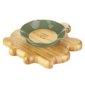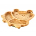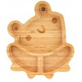 Тарілка у формі кумедної жаби виготовлена з натурального екологічно чистого матеріалу - бамбука. Складається з трьох секцій (одна велика та 2 маленькі), для поділу продуктів. Щоб малюк не перекинув тарілку, вона має силіконову присоску на основі, тому вона легко і надійно кріпиться до дитячого стільця для годування або столу.