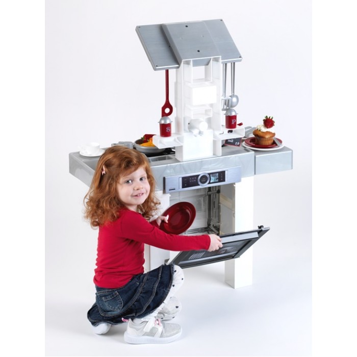 - Має електронні звуки приготування їжі, мерехтливе світло і кран з функцією води.