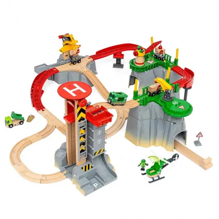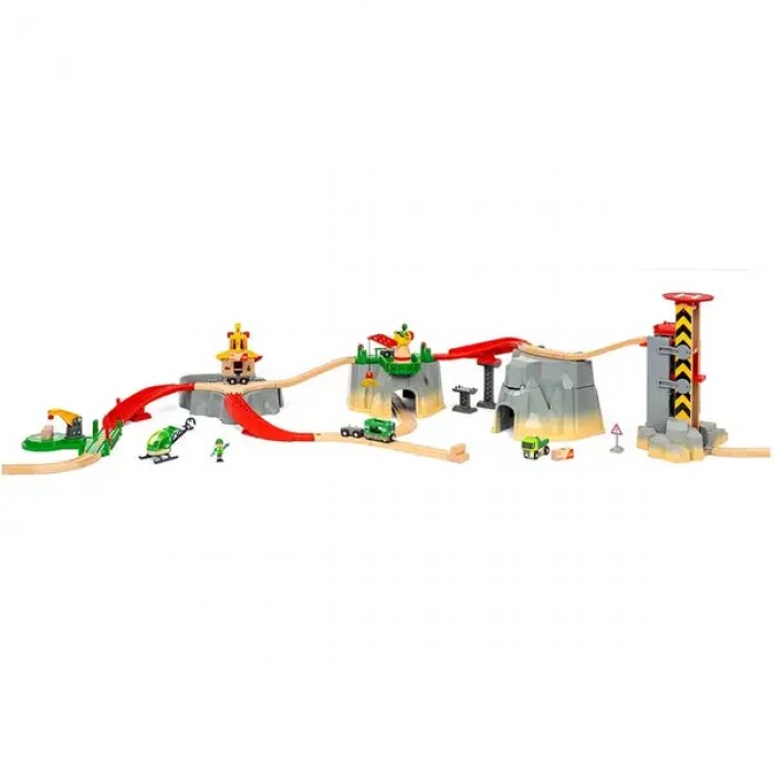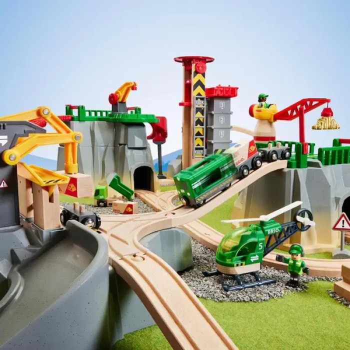 Гірська станція BRIO дозволяє керувати справжнім вантажним пунктом, використовуючи вантажний поїзд з вагонами, навантажувальну техніку та вертоліт. Кожен елемент набору продуманий так, щоб розвивати уяву, логічне мислення та координацію рухів.