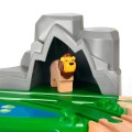 Чуєте гарчання лева? Це він вітає вас у своєму королівстві. Механічний поїзд дозволяє безпечно дослідити саванну і милуватися дикими тваринами в їхньому природному середовищі. Давайте розглянемо, хто тут є ще? За деревом виглядає жираф, а біля нього стоїть слон. Можете помістити одну тварину у вагон перевезення і покататися з нею крізь тунель та високий підйом. Не забувайте водити тварин до водойми та задокументувати все на камеру. Крім цього, у наборі є аптечка для допомоги тваринам.