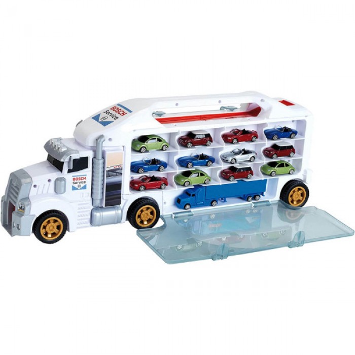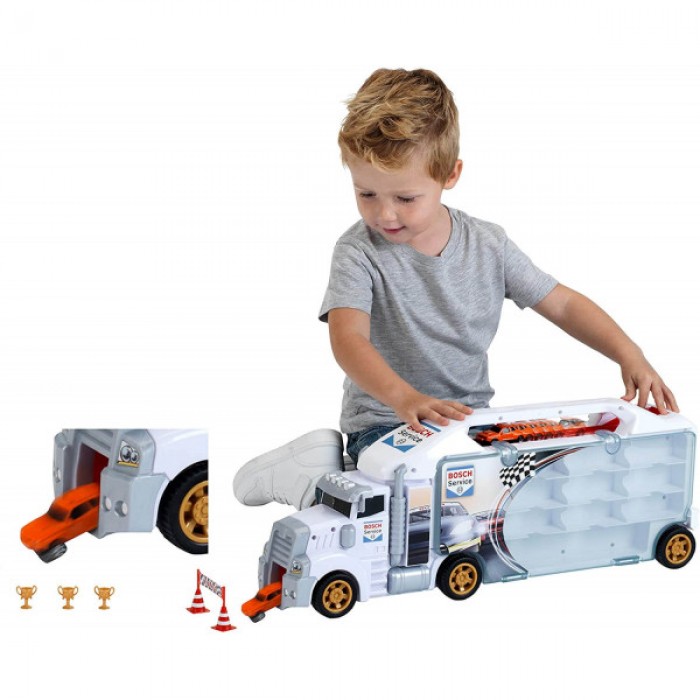 Іграшковий бокс Bosch Car Service вміщує 24 автомобілі та 2 вантажівки в масштабі 1:64 (автомобілі не включені).