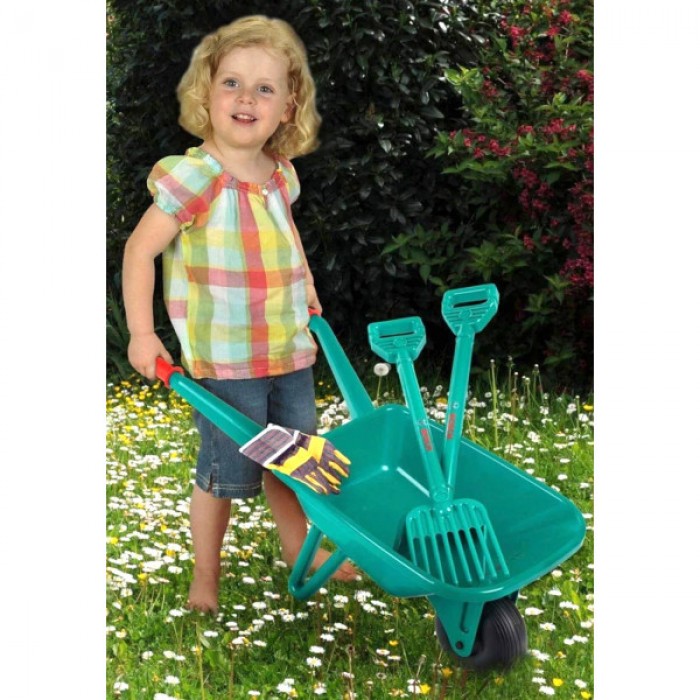 Набір Klein Bosch Garden Set містить тачку, лопату, граблі та захисні рукавички. Іграшки Klein дозволяють дітям безпечно брати участь у повсякденній діяльності своїх батьків.
