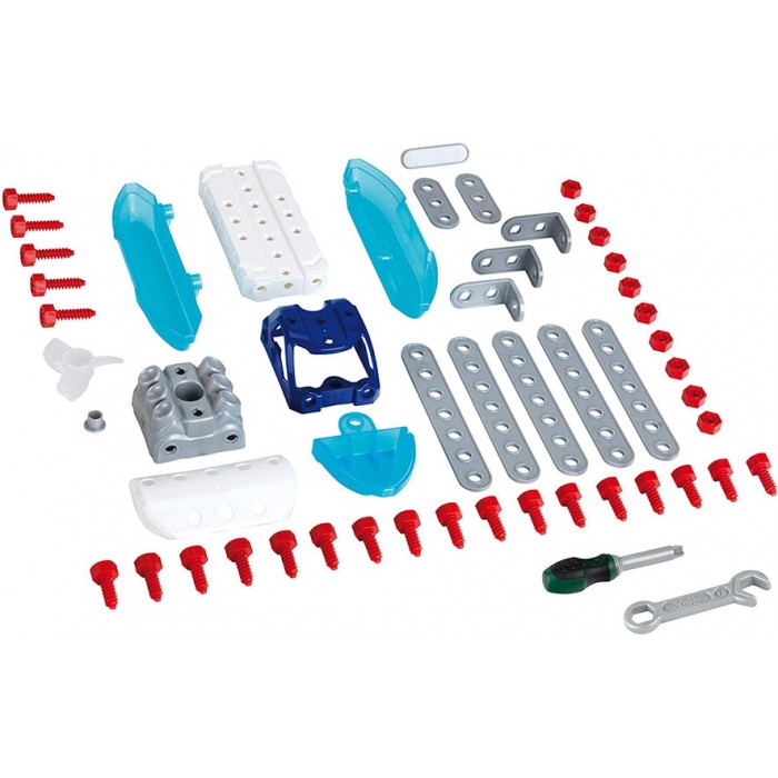 Дитячий конструктор Bosch Watercraft Team дозволяє зібрати три різні водні судна: катер, катамаран та гідроплан. Набір складається з 55 елементів. Містить викрутку та гайковий ключ.