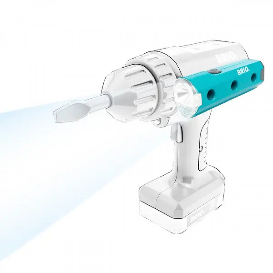 Зробіть свою гру яскравішою викорустовуючи Дитячий ліхтарик BRIO Builder (34601). Повністю сумісний із деталями BRIO Builder, цей зручний ліхтарик можна приєднати до інших інструментів Builder, таких як шуруповерт або інтегрувати в будь-які інші творіння для творчої та експериментальної гри. Автомобільний ліхтар, настільна лампа чи прожектор? Які ідеї ви можете створити? Завдяки світлодіодним лампам, які можуть світити різними кольорами, цей іграшковий ліхтарик яскраво світить, коли ви граєте.