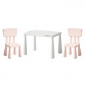 Купити дитячий столик і два стільці POPPET Mammut White Baby Pink в Україні. Регулювання висоти, висувний пенал, навантаження до 100 кг. Для дому та вулиці. Для дітей 1–6 років.