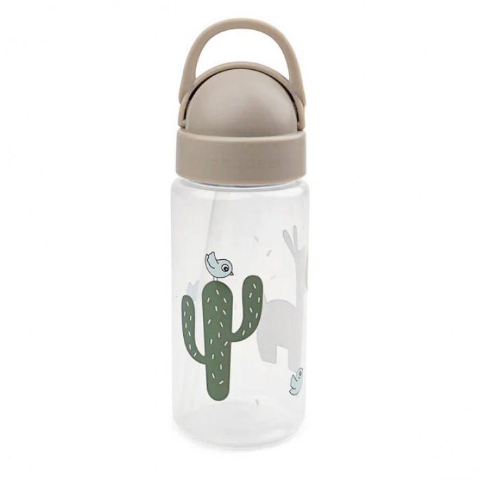 Пляшка прикрашена персонажами Lalee, Birdee та кактусами у зелених і пісочних тонах. Скандинавський дизайн Done by Deer поєднує практичність і сучасний стиль.