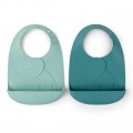 Набір із двох силіконових нагрудників Done by Deer Peekaboo Elphee у стильних синіх відтінках допоможе зробити прийоми їжі малюка більш охайними вдома та в дорозі.
