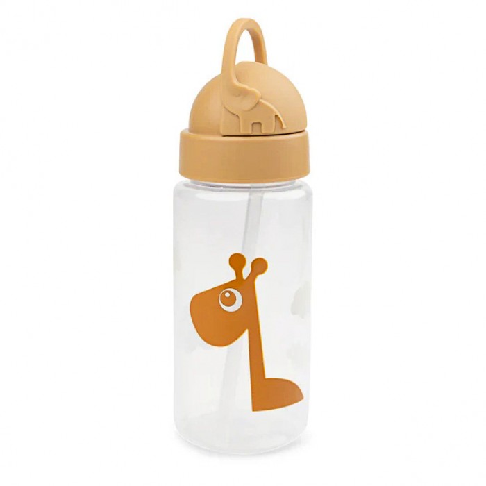 Пляшка прикрашена персонажем Raffi та казковими хмаринками у теплих гірчичних тонах. Непроливна конструкція робить її незамінним аксесуаром у дорозі, а процес пиття — більш зручним і цікавим для дитини.