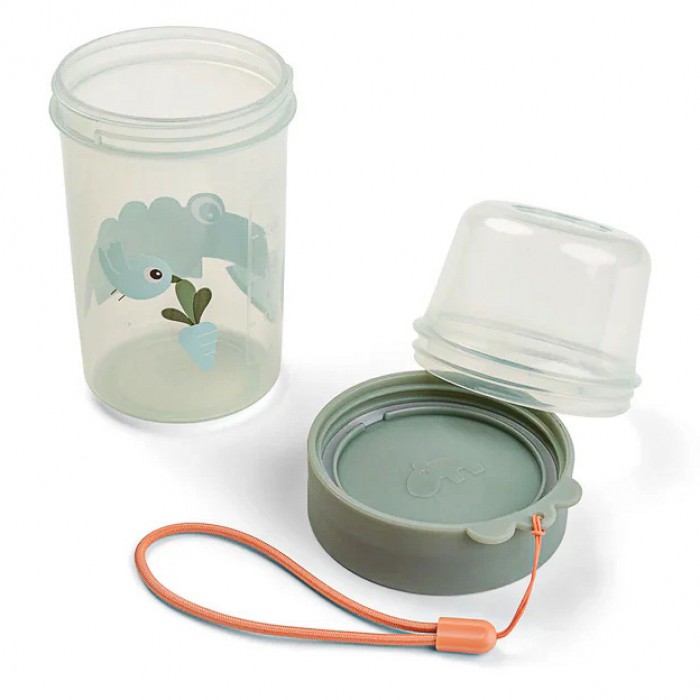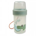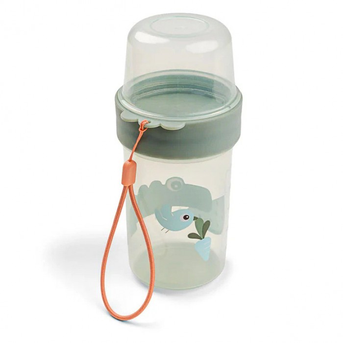 Зелений контейнер прикрашений милим крокодилом Croco та персонажем Birdee. Зручний формат робить його ідеальним для перекусів поза домом.