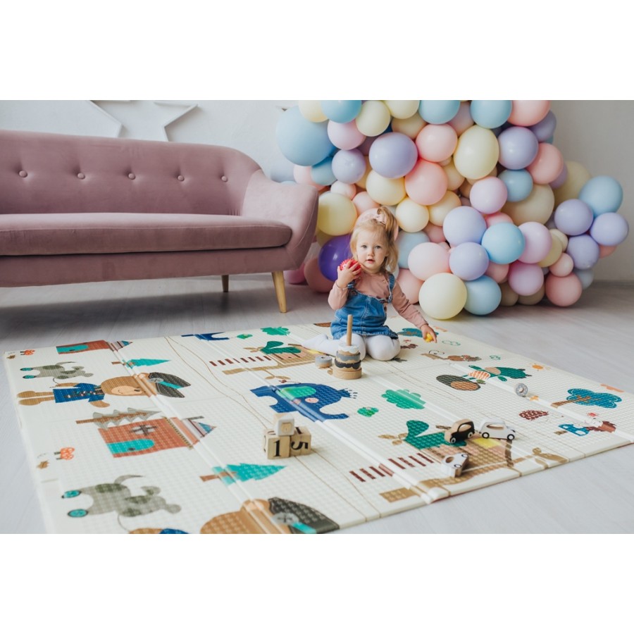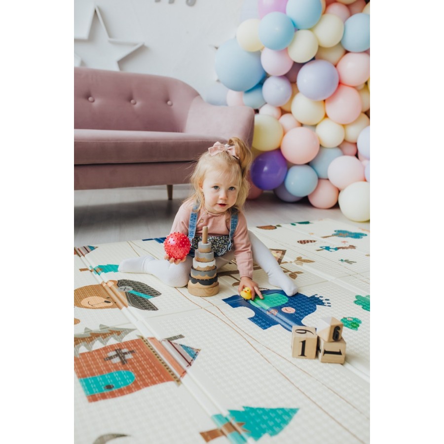 Дитячий двосторонній складаний килимок POPPET - це безпечна, комфортна, стильна зона для ігор і розвитку. Килимок призначений для дітей від народження до 7 років. Це універсальне складне покриття підійде для викладання на животик і повзання (0-9 місяців), перших кроків (9-12 місяців), навчання (1-4 роки) і активних ігор (4-7 років).
