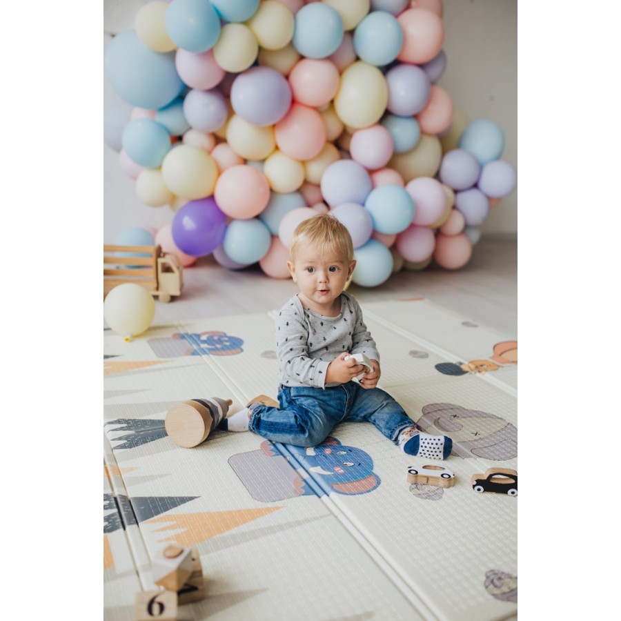 Дитячий двосторонній складаний килимок POPPET - це безпечна, комфортна, стильна зона для ігор і розвитку. Килимок призначений для дітей від народження до 7 років. Це універсальне складне покриття підійде для викладання на животик і повзання (0-9 місяців), перших кроків (9-12 місяців), навчання (1-4 роки) і активних ігор (4-7 років).