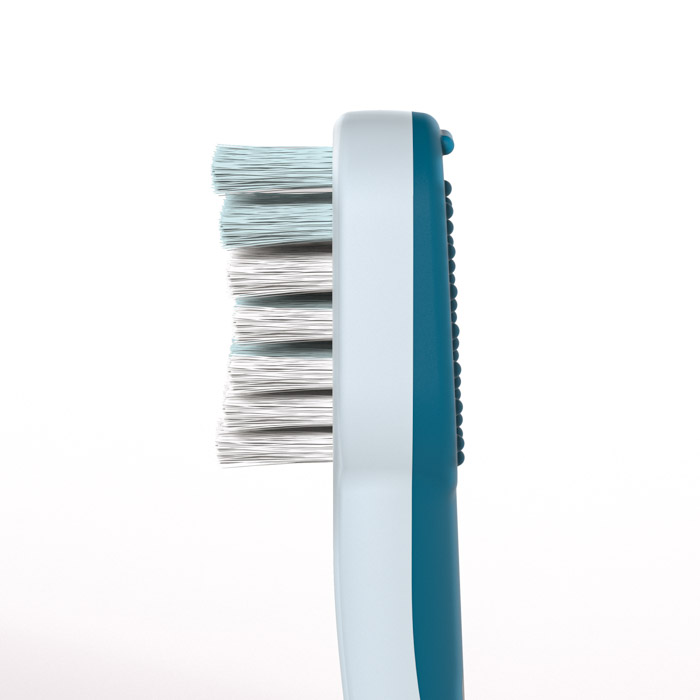 М’яка щетина акуратно видаляє наліт, не пошкоджуючи емаль молочних зубів. Ергономічна ручка зручна для маленької дитячої руки та допомагає впевнено тримати щітку. Синій колір виглядає універсально та привабливо.