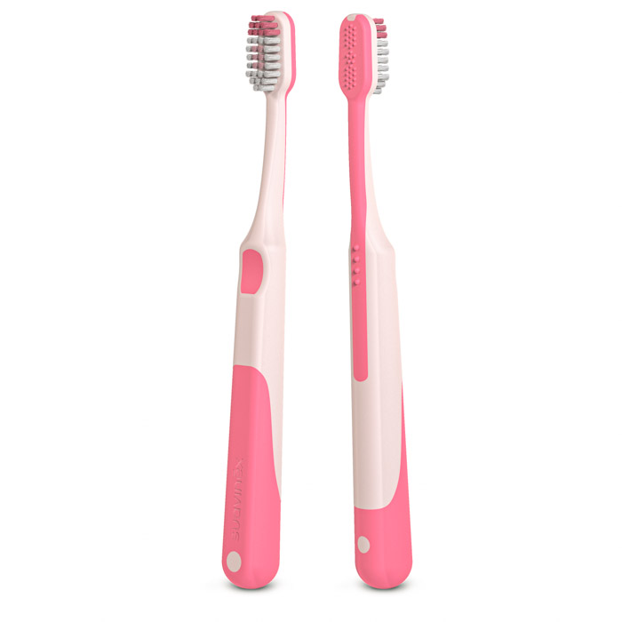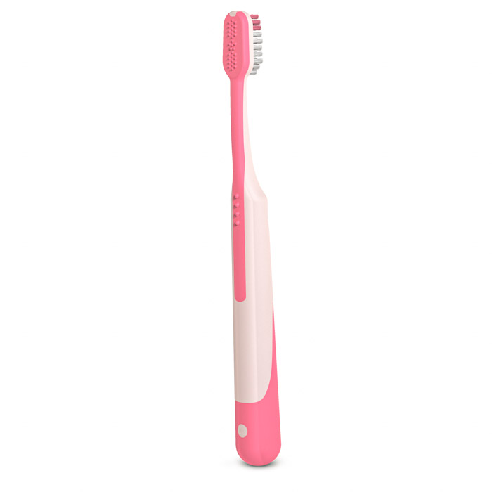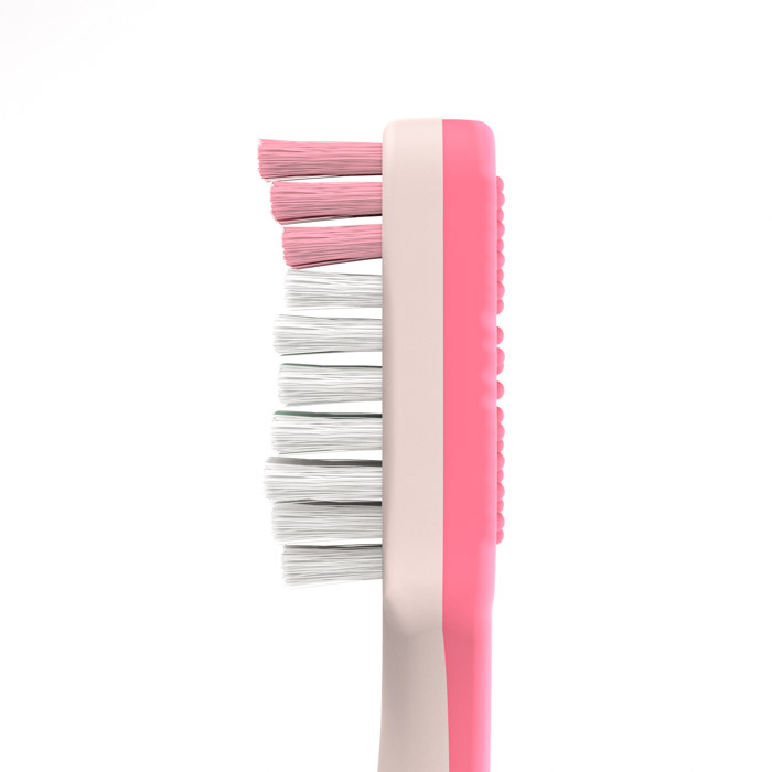 Щітка має м’яку щетину, яка дбайливо очищає зуби, не пошкоджуючи емаль і чутливі ясна. Ергономічна ручка зручно лежить у дитячій руці та допомагає контролювати рухи під час чищення. Рожевий колір робить процес догляду приємнішим.