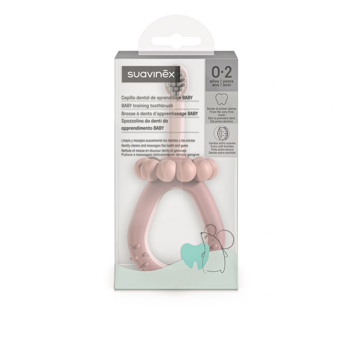 Дитяча зубна щітка Suavinex Stage 1 з масажером створена для малюків віком від 0 до 2 років — періоду прорізування перших зубів. Вона допомагає делікатно доглядати за ротовою порожниною та масажувати ясна, зменшуючи дискомфорт.