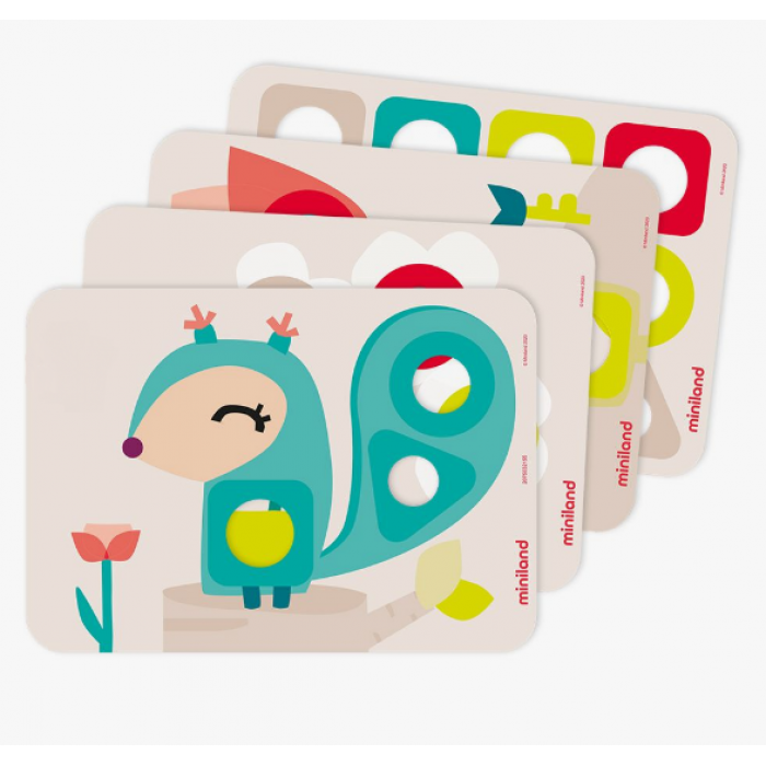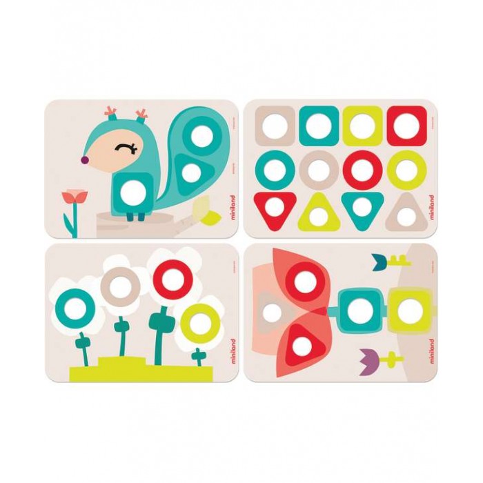 У комплекті — 3 базові геометричні форми: коло, квадрат і трикутник. Це допомагає дитині вивчати форми в ігровій формі.