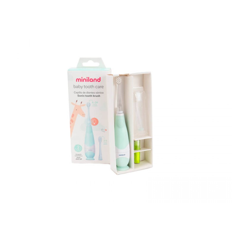Перетворіть дитячу чистку зубів у легку та захоплюючу звичку з дитячою електричною зубною щіткою Miniland Baby Tooth Care! Вона розроблена для безпечного та ефективного чищення від першого зубика і до 6 років.