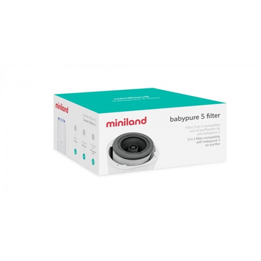Оригінальний змінний фільтр потрійної дії (фільтр попереднього очищення, фільтр HEPA та фільтр з активованим вугіллям) для очисника повітря 5 в 1 Miniland Babypure.