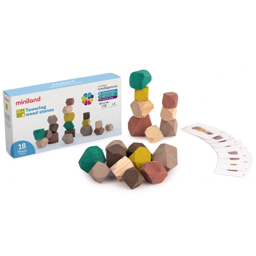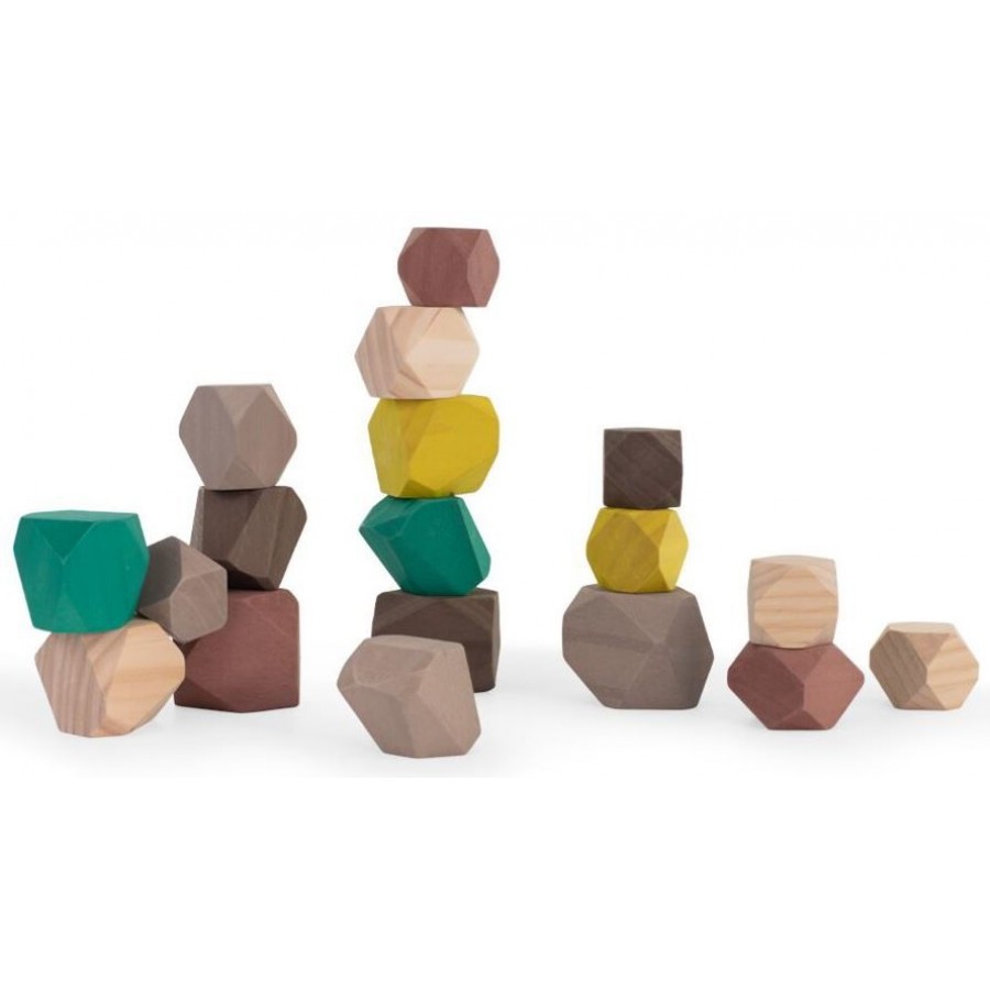 Камінці виготовлені з високоякісного екологічно чистого матеріалу – дерева, відмінно відшліфовані та пофарбовані. Набір має міжнародний сертифікат FSC. Вік – 3-6 років