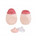 М'який дитячий поїльник дозволяє маляті з 6-ти місяців їсти домашні фруктові та овочеві пюре, йогурти. Малюк їсть граючись і залишається чистим. У комплект входить 2 контейнери по 180 мл, дві насадки: силіконова соска 1-й вік (6 - 12 місяців) і твердий носик (12 місяців і старше) і кришка для закривання. Широке горлечко: фляжку легко наповнювати їжею і мити. Стійка основа: фляжка не перекидаються. Догляд: мити в мильній воді, йоржиком або в посудомийній машині. Матеріал: Харчовий силікон. Безпечний, не б'ється і не дряпається, не вбирає запахи, безшумний. Висота: 12 см. Рекомендований вік: з 6 місяців.
