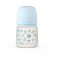 Пляшечка оснащена анатомічною силіконовою соскою з повільним потоком, що підходить для молока, суміші та води. Антиколіковий клапан зменшує потрапляння повітря та допомагає знизити ризик виникнення колік.