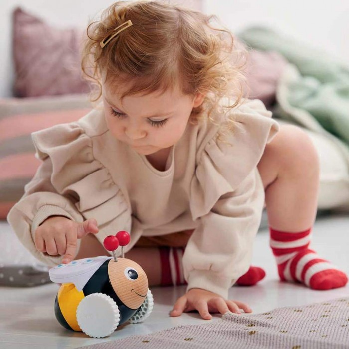 Допоможе маленьким дітям розвивати STEM навички у веселій та ігровій формі. На різний вік іграшка розвиватиме дитину по-різному. Для тих, хто тільки вчиться повзати, простимулює дитину повзати за джмелем. Далі допоможе дитині з першими кроками. З віком покаже, що таке елементарне програмування – просто натискайте кнопки руху, іграшка їх запам'ятає та відтворить.