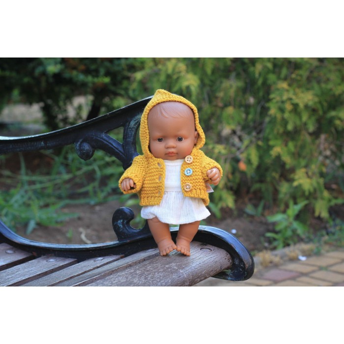 Стильний комплект одягу для ляльок розміром 21 см, до складу якого входить елегантна сукня та легкий жакет. Цей наряд стане чудовим доповненням гардеробу ляльки: поєднує комфорт та охайний дизайн, підходить як для повсякденних ігор, так і для святкових образів.