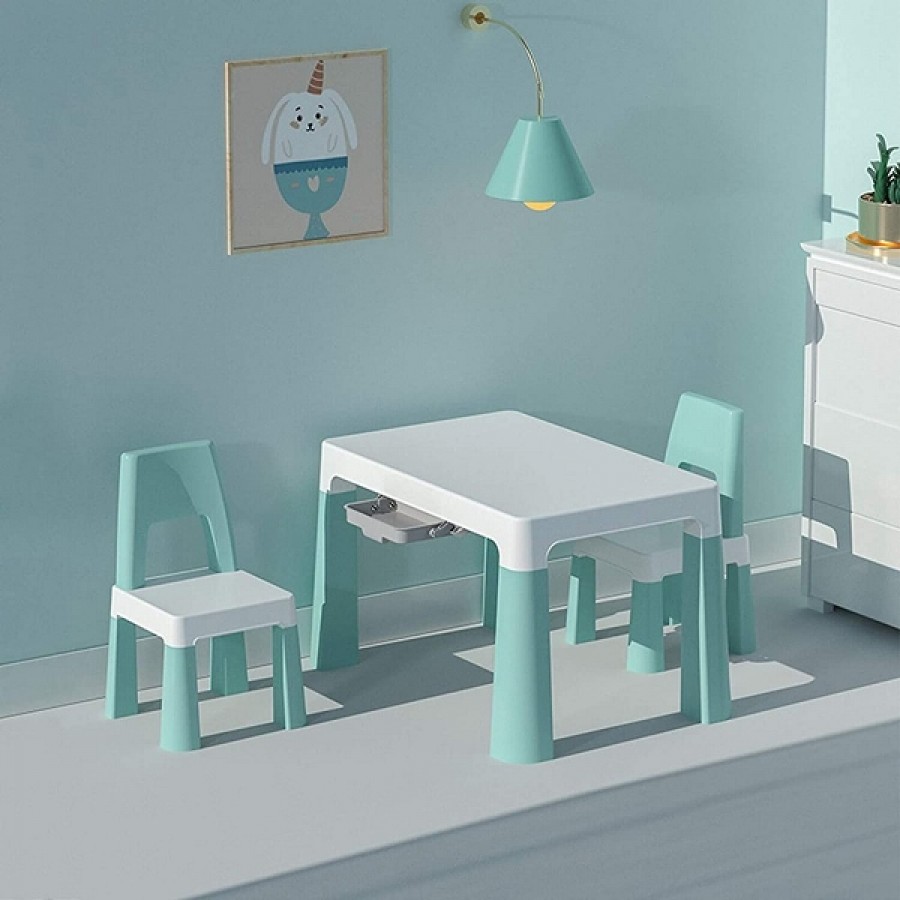 Набір складається з функціонального столика і двох зручних стільчиків для дітей від 1 року до 6 років. Трансформується відповідно до зміни потреб та інтересів дітей. Набір "Моно Блу" обов'язково повинен бути у Вашої дитини. Сучасний дизайн і приємна колірна гамма набору стане стильним доповненням ігрової зони.