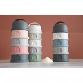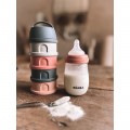 Модульна конструкція з чотирьох контейнерів дозволяє заздалегідь підготувати порції молочної суміші, каші або перекусів. Перший відсік оснащений зручним носиком і кришкою для акуратного пересипання, решта три герметично закручуються між собою.