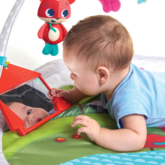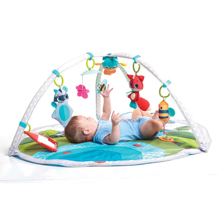 Килимок з дугами Tiny Love «Весела галявина» створений для малюків від народження та допомагає розвивати основні навички через гру й рух. М’який килимок забезпечує комфортний простір для ігор на спинці та на животику.