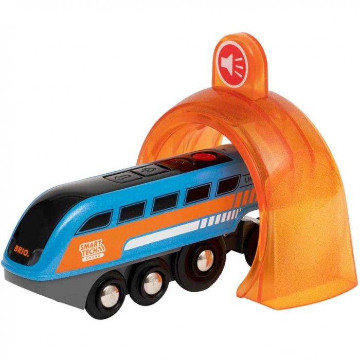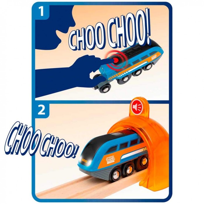 Дитина натискає кнопку - записує - і поїзд відтворює звук під час проїзду через Smart Tech-тунелі.