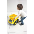 За допомогою цього автомобіля малюк може перевозити пісок або камінчики, граючи в будівельників. Відкидний кузов дозволяє легко занурювати і вивантажувати матеріали для дитячого об'єкта будівництва. До машини можна прикріпити мотузку і катати її за собою. Великі колеса сприяють тому, що іграшка може їздити по будь-поверхності.Самосвал виготовлений з високоякісного та безпечного пластику. Призначений для гри в приміщенні або на відкритому повітрі. Яскравий, з великими деталями і безшумними колесами він ідеально підходить для маленьких дітей. Відсутність гострих кутів і кромок забезпечує повну безпеку такої іграшки. Підходить для гри в піску і снігу.