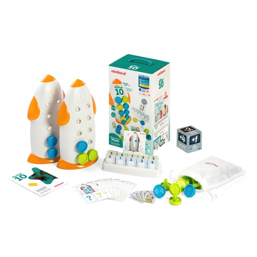 Ракета 10 робить ставку на маніпулятивну математику. Ця цікава гра є потужним педагогічним ресурсом сприяє засвоєнню базових математичних понять, таких як: робота з шаблонами, асоціація число-кількість, спритність в підрахунку, декомпозиція числа 10, введення в додавання і віднімання і непарні і парні числа.