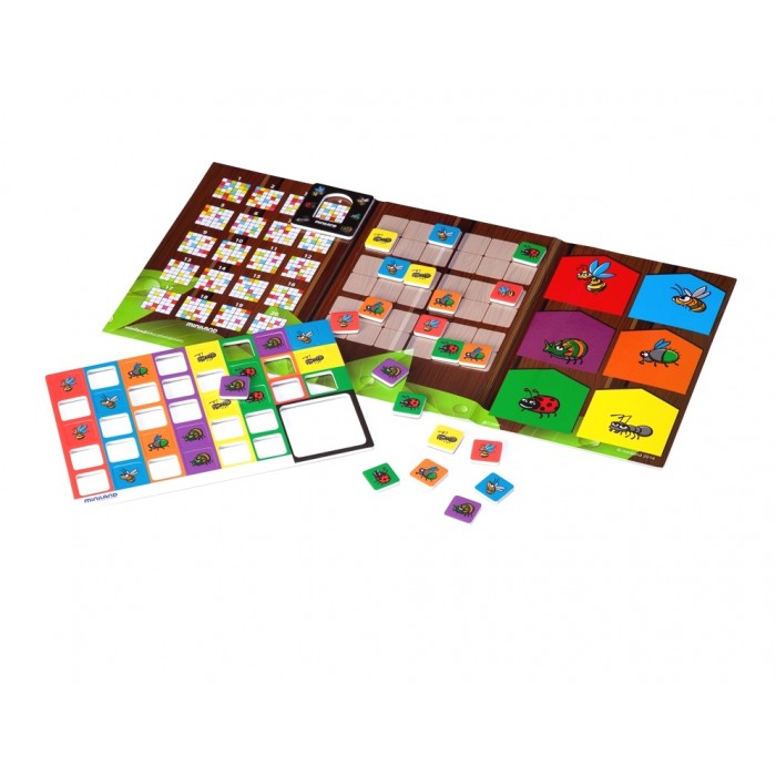 Настільна спрощена версія Судоку - гри, де замість цифр зображені комахи. Цікава гра, відмінно підійде для розваги в дорозі і на відпочинку. Картки мають магнітну основу, яка утримує їх на ігровому полі. Ігрове поле розділено на квадрати, має 20 завдань і підказки з їх рішенням. У комплекті 36 кольорових фішок з зображеннями комах.