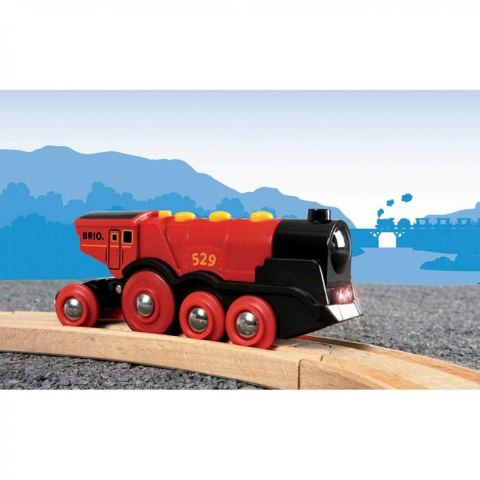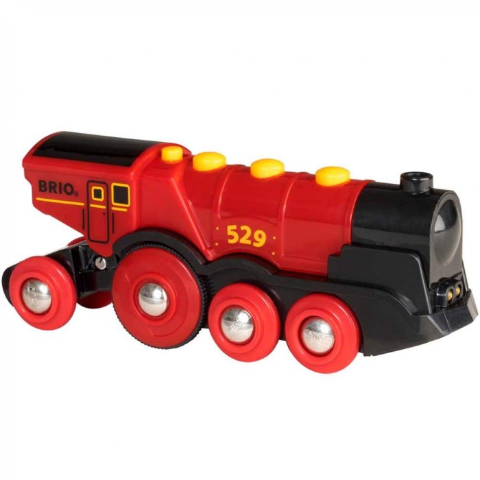 Завдяки двом переднім фарам, що світяться, повній швидкості, потужним колесам і звуку «чу-чу» цей локомотив вражає навіть найдосвідченішого машиніста. Поїзд може рухатися вперед/назад, а перемикач зверху дозволяє переключитися в ручне керування поїздом. Як і всі локомотиви бренду, його можна примагнітити до інших вагонів. Вирушайте у подорож з новим набором. Тепер можна винаходити ще більше ігрових сюжетів у місті BRIO.