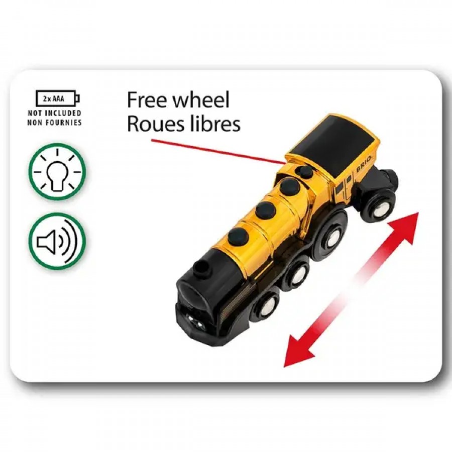 Могутній золотий локомотив для залізниці BRIO на батарейках