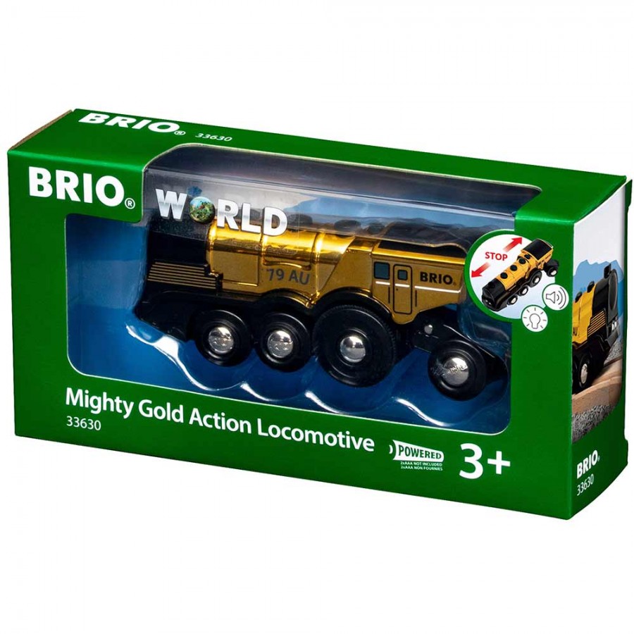 Могутній золотий локомотив для залізниці BRIO на батарейках (33630) створений спеціально для покращення вашого містечка BRIO. Скільки всього потрібного та корисного можна витворити з цим локомотивом.