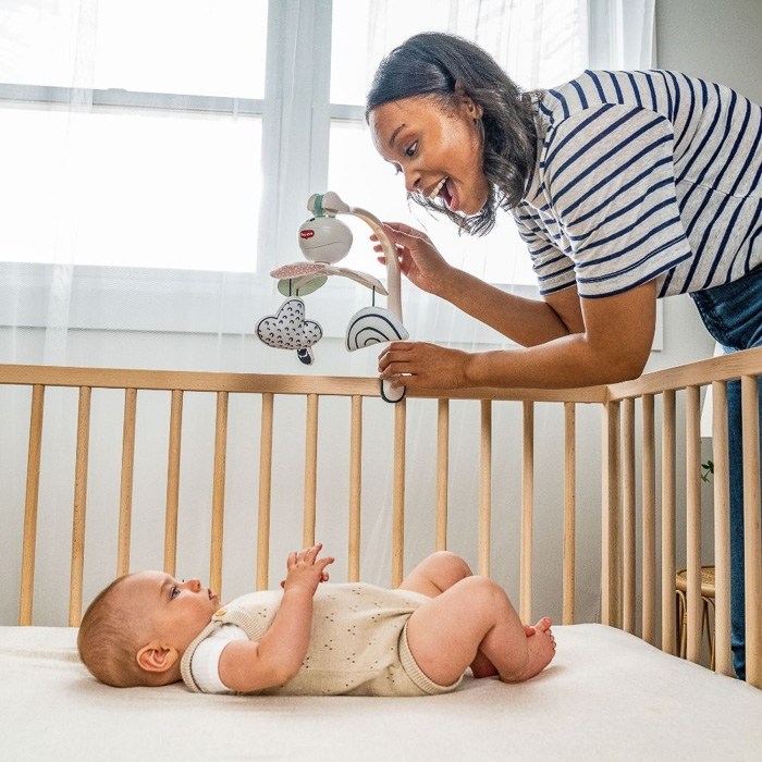 Універсальне кріплення підходить для більшості дитячих ліжечок, колисок, манежів, колясок і люльок, забезпечуючи малюку спокій та розваги в будь-якій ситуації.