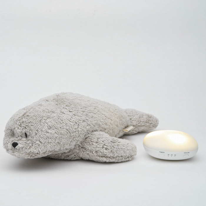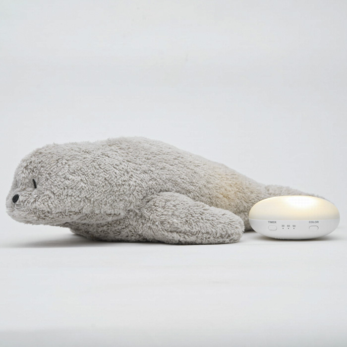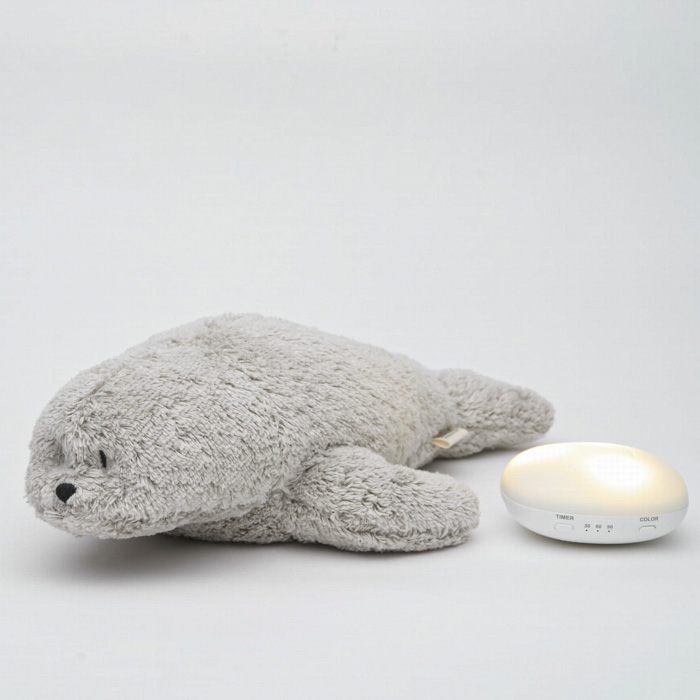 Музичний тюлень MOONIE Organic Seal Gray — м’яка іграшка зі звуками природи, рожевим шумом та нічником із 7 кольорами підсвічування. Вбудований датчик плачу автоматично активує обраний режим, створюючи спокійну атмосферу перед сном і протягом ночі.
