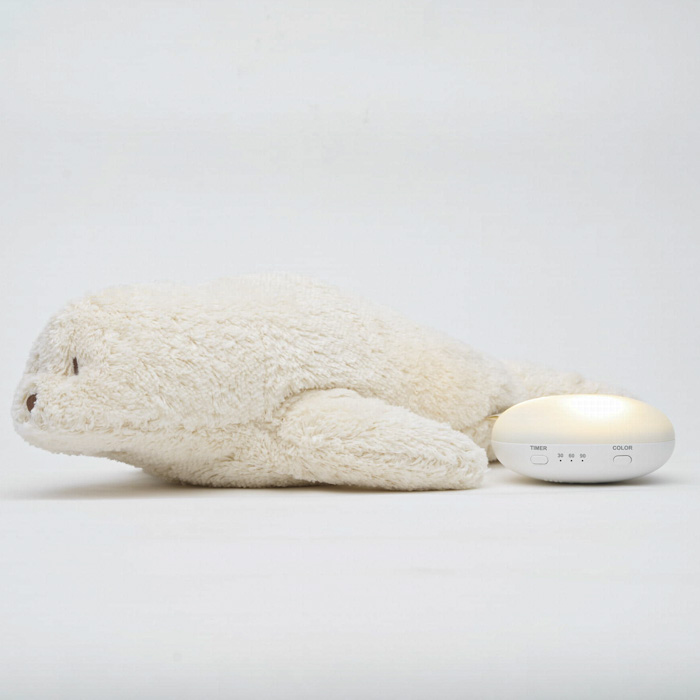 Музичний тюлень MOONIE Organic Seal Polar — м’яка іграшка зі звуками природи, рожевим шумом та нічником із 7 кольорами підсвічування. Вбудований датчик плачу автоматично активує обраний режим, створюючи спокійну атмосферу перед сном і протягом ночі.