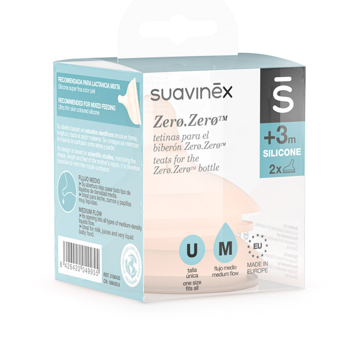 Інноваційна система ZERO.ZERO адаптується до ритму смоктання дитини та мінімізує утворення повітряних бульбашок під час годування. Середній потік підходить для грудного молока та адаптованих сумішей, забезпечуючи природні відчуття під час годування.