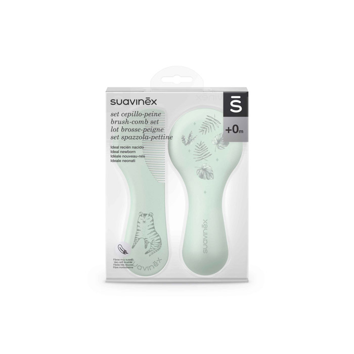 Гребінці розроблені з урахуванням чутливості дитячої шкіри та зручні у використанні. Практичний зелений колір надає набору охайного та універсального вигляду й гармонійно поєднується з іншими аксесуарами Suavinex.