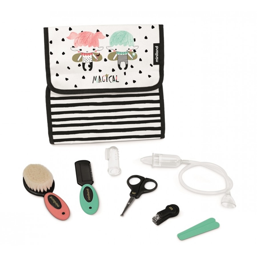 Дорожній набір з гігієнічними приладдям для малюків від Miniland включає в себе все необхідне для щоденного догляду і гігієни вашого малюка: