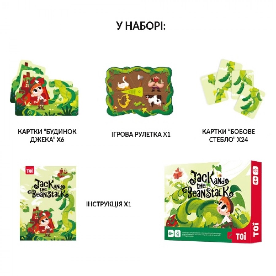 Настільна гра "Джек і бобове дерево" від TOI розвиває у малят посидючість і концентрацію уваги, комунікативні здібності, логічне мислення, вміння рахувати, пам'ять, розширює кругозір дитини.