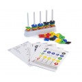 В комплекті - основа (21 см) з 5 колон, 100 кольорових геометричних фігур, 24 картки з завданнями різного рівня складності.