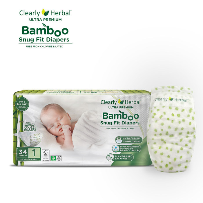 Підгузки Clearly Herbal Bamboo розмір 1 (2–5 кг), 34 шт — натуральні та безпечні підгузки для новонароджених, створені з турботою про чутливу шкіру малюка. Підходять для використання з перших днів життя.