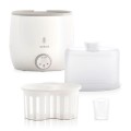 Підігрівач-стерилізатор на 2 пляшечки є багатофункціональним пристроєм для стерилізації дитячих пляшечок, аксесуарів, а також підігріву і розморожуванню різних сумішей. Це незамінний атрибут в будинку, де є маленька дитина. Девайс стерилізує предмети природним способом, за допомогою пари. Сам процес займає всього лише кілька хвилин. Прилад має дисплей, на який виводиться інформація про час, який залишився до завершення процедури. Також є функція автоматичного відключення. У підігрівач-стерилізатор можна поміщати одночасно 2 пляшечки, тому він ідеально підійде для батьків двійнят або близнюків.